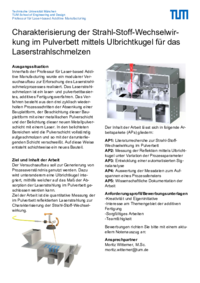 Ziel der Arbeit ist die quantitative Messung der im Pulverbett reflektierten Laserstrahlung.Der Inhalt der Arbeit lässt sich in folgende Arbeitspakete (APs) gliedern: