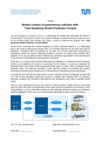 Are you looking for a chance to work on cutting-edge technology that will shape the future of transportation? Then look no further! Our research institute is currently seeking a student to work on an exciting thesis that involves the motion control of autonomous vehicles with Tube Nonlinear Model Predictive Control (MPC).
