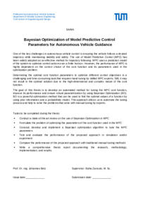 Concept, develop and implement a Bayesian optimization algorithm to tune the MPC parameters