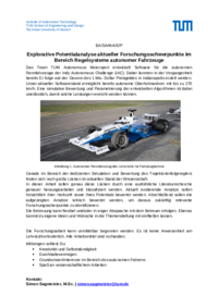 Explorative Potentialanalyse aktueller Forschungsschwerpunkte im Bereich Regelsysteme autonomer Fahrzeuge