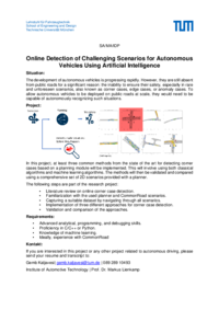 In this project, at least three common methods from the state of the art for detecting corner cases based on a planning module will be implemented. This will involve using both classical algorithms and machine learning algorithms. The methods will then be validated and compared using a comprehensive set of 2D scenarios provided with a planner.