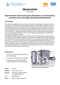 Thermische Energiespeicher können ein wichtiger Baustein des nachhaltigen Energiesystems der Zukunft werden. Sie ermöglichen beispielsweise die Integration fluktuierender erneuerbarer Energien in den Wärmesektor oder die zeitlich und örtlich flexible Verwertung industrieller Abwärme. Ein vielversprechendes Speicherkonzept stellt die thermische Energiespeicherung auf Basis eines geschlossenen Absorptionsprozesses mit einem flüssigen Sorbens dar, das derzeit am ZAE Bayern erforscht wird. Im Vergleich zu sensiblen oder latenten Speichern können mit dieser Speichertechnologie deutlich höhere Energiespeicherdichten erreicht und ein Großteil der Energie praktisch verlustfrei über lange Zeiträume gespeichert werden. Eine Schlüsselkomponente dieses Speicherkonzepts ist der Absorber/Desorber, an dem ein kombinierter Wärme- und Stoffübergang stattfindet. Im Unterschied zu gängigen Absorptionskältemaschinen ist für die Speicheranwendung eine deutlich größere Konzentrationsspreizung im Sorbens erforderlich. Dies kann z.B. durch eine Reduzierung des auf die Austauschfläche aufgebrachten Sorbens-Volumenstroms erreicht werden. Dadurch reduziert sich allerdings auch der auf der Austauschfläche übertragene Wärmestrom. Dieser für die Speichertechnologie fundamentale Zusammenhang soll im Rahmen dieser Masterarbeit für den Absorptions- und den Desorptionsprozess an einer bestehenden experimentellen Versuchsanlage untersucht werden.