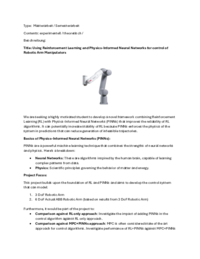 This thesis will, therefore, focus on the combination of data-driven ML model and Physics behind the Robotic Arms to gain the benefits of both worlds and improve the reliability of the RL predictions. Furthermore, it would be part of the project to evaluate if we can enforce physical constraints to increase safety of cobots using PINNs+RL.