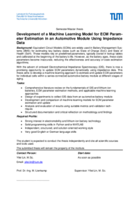 Hintergrund: Die präzise Zustandsüberwachung von Lithium-Ionen-Batterien in Elektrofahrzeugen ist entscheidend für deren Leistung, Sicherheit und Lebensdauer. Der Ladezustand (SoC) und die Temperatur einzelner Batteriezellen sind dabei zwei der wichtigsten Parameter. Da der SoC nicht direkt gemessen werden kann und die derzeitigen Methoden in extremen Betriebsbedingungen oft ungenau sind, besteht ein hoher Forschungsbedarf. Zudem ist die Anzahl der Temperatursensoren aufgrund von Kostengründen begrenzt, was die direkte Temperaturmessung jeder Zelle unmöglich macht. Mit der Entwicklung der Technologie könnte die elektrochemische Impedanzspektroskopie (EIS) zukünftig in Fahrzeugen integriert werden. Durch die Kombination von Impedanzmessungen, vorhandenen Messgrößen (wie Spannung) und maschinellem Lernen soll eine präzisere Schätzung des SoC und der Temperatur jeder einzelnen Zelle erreicht werden.