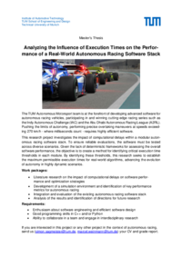 - Integration and evaluation of the existing autonomous racing software stack