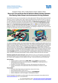 Autonomous Racing: Recurrent Convolutional Neural Network Based Interface between Sim-Racing Video Stream and Autonomous Driving Software