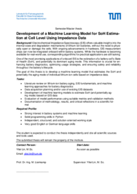 The goal of this thesis is to develop a machine learning model that estimates the SoH and potentially the aging mode of individual lithium-ion cells based on impedance data.