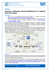 OPC UA is a networking protocol used widely in industrial automation (https://opcfoundation.org/about/opc-technologies/opc-ua/). DDS is a lower level protocol which occupies a similar function. DDS is notably used in the popular ROS 2 Robot Operating System (https://www.dds foundation.org/what-is-dds-3/). The OPC UA framework enables the standardised exchange of information between different systems. E.g. when a new panel is installed in a solar park, it is able to integrate itself into the network with minimal to zero configuration. One method of sharing information from such assets is called "PubSub" publish-subscribe. The figure below is taken from the OPC UA specification; it defines how a Message Oriented Middleware (MOO) can be used to transform the normally 1-to-1 messaging into many-to many messaging (PubSub). The goal of the work is for the student to create a proof-of concept implementation of this "OPC UA-over-DDS" framework and investigate the methods for integrating new MOOs into an OPC UA architecture.