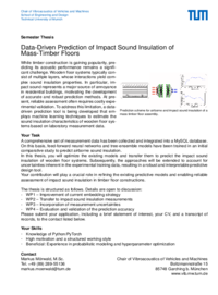 A comprehensive set of measurement data has been collected and integrated into a MySQL database. On this basis, feed-forward neural networks and tree-ensemble models have been trained in an initial comparative study to predict airborne sound insulation. In this thesis, you will optimize the existing models and transfer them to predict the impact sound insulation of wooden floor systems. Subsequently, the approaches will be extended to account for uncertainties inherent in the experimental training data, resulting in a robust and interpretable predictive design tool. Your contribution will play a crucial role in refining the existing predictive models and enabling reliable assessment of impact sound insulation in timber floor constructions.