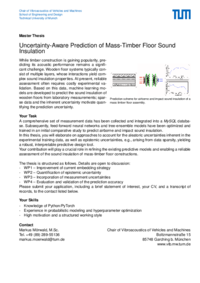 Your contribution will play a crucial role in refining the existing predictive models and enabling a reliable assessment of the sound insulation of mass-timber floor constructions. By joining our team, you have the opportunity to apply your theoretical knowledge in a real-world context, gaining valuable insights into the development and deployment of machine learning solutions.- Voraussetzungen