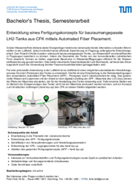 Für eine potenzielle Anwendung in der Luftfahrt ist es zielführend einen möglichst automatisierten Herstellungsprozess für einen Prototypen des Tanks zu entwickeln. Hierfür ist eine Einarbeitung in die Rahmenbedingungen des verwendeten Automated Fiber Placement (AFP) - Prozesses durch Literaturrecherche nötig. Das gesammelte Wissen soll zusammen mit der Arbeit an dem digitalen Zwilling der AFP - Maschine des LCC dazu dienen die Pfade der Maschine abzuleiten, die für die Herstellung des Tanks notwendig sind. Falls einzelne Stellen wie im Bereich der Einspannungen des Tanks nicht mit der Maschine produziert werden können, soll ein Konzept zum händischen Aufbringen (hand lay-up) des CFK an diesen Stellen abgeleitet werden.