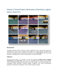 The goal of this thesis is to develop a system for generating synthetic data of logistic environments using Isaac Sim, with a focus on generating diverse, realistic, and annotated scenes for machine learning and perception tasks. The synthetic scenes should feature non-overlapping object placement, dynamic lighting conditions, and varied environmental properties to simulate the complexity of real-world warehouse settings.
