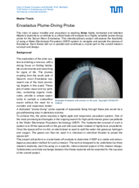 The chair of space mobility and propulsion is seeking three highly motivated and talented Master's students to contribute to a critical trade-off analysis for a highly versatile plume-diving probe for the Saturn Moon Enceladus. This interdisciplinary project will assess the feasibility of using a Water-Electrolysis Propulsion (WEP) system to navigate and sample the plumes of Enceladus. Each thesis will run in parallel and contribute a crucial part to the overall mission concept and design.