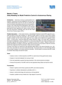 The goal of the thesis is to identify the most significant delay effects in the vehicle dynamics (e.g.: actuators, tires, load shift) from real-world measurement data. The second step is to verify that these effects are accurately modeled in the vehicle dynamics simulation. The third step is to enhance the MPC model to consider these delays and test the results.
