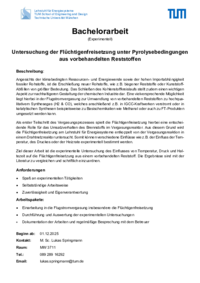 • Einarbeitung in die Flugstromvergasung insbesondere die Flüchtigenfreisetzung