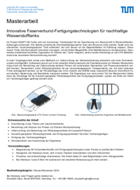 In einer Vorgängerarbeit wurde eine Methodik zur Untersuchung der Strebenanbindung entwickelt und erste Parameterstudien durchgeführt. Aufbauend darauf soll in der aktuellen Arbeit einerseits die Parameterstudie zur Streben-Wandanbindung durch die Herstellung und Untersuchung weiterer Proben mit variierenden Geometrien und Prozessparametern vertieft werden. Desweiteren sollen Wickelprogramme für die bauraumangepasste Tankgeometrie, die von einer externen Firma bereitgestellt werden, an der Wickelanlage des LCCs erprobt und mithilfe eines Laserprofil-Sensors hinsichtlich Faserrutschen, Bedeckung und Bandbreite analysiert werden. Die Ergebnisse aus dem ersten Teil der Masterarbeit bilden dann die Grundlage für die Auswahl geeigneter Wickelprogramme und Fertigungsparameter, sodass am Ende der Arbeit ein Technologieträger gefertigt werden kann.