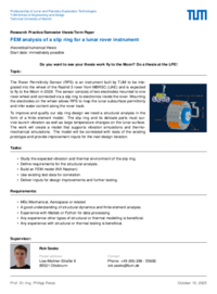 To improve and qualify our slip ring design we need a structural analysis in the form of a finite element model. The slip ring and its delicate parts must survive launch vibration as well as large temperature changes on the lunar surface. The work will create a model that supports vibration simulations and thermo-mechanical simulations. The model will be correlated with tests of the existing prototype and provide improvement inputs for the next design iteration.