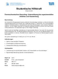 Thermochemisches Recycling: Unterstützung bei experimentellen Arbeiten und Auswertung