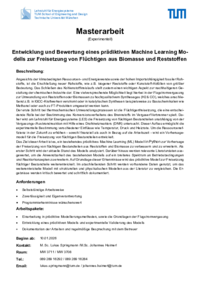 Das Ziel dieser Arbeit ist es, ein bestehendes prädiktives Machine Learning (ML) Modell in Python zur Vorhersage der Freisetzung von flüchtigen Bestandteilen aus Reststoffen und Biomasse zu verbessern und zu erweitern. Als erster Schritt wird der aktuelle Stand des Modells analysiert. Darüber hinaus werden relevante Literaturdaten ausgewertet, um die Anwendbarkeit des bestehenden Modells auf ein breiteres Spektrum an Betriebsbedingungen und Reaktorkonzepten zu erweitern. Auf Grundlage dieser Erkenntnisse wird das prädiktive Modell zur Freisetzung flüchtiger Bestandteile weiterentwickelt. Im abschließenden Schritt werden vorhandene Daten genutzt, um das weiterentwickelte Modell mit strukturellen und physikalischen Modellen aus der Literatur zu vergleichen. Die Ergebnisse werden kritisch bewertet und schriftlich dokumentiert.