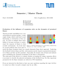 In recent studies several methods have been used to model the flame dynamics based on a purely kinematic flame sheet approach. Neglecting the feedback between flame and flow, such ansatzes merely depend on geometrical parameters of flame and flow specific quantities. Especially, the desnity ratio of burnt and unburnt gases quantifying the expansion mechanism of the flame is disregarded.The main goal of this thesis is to evaluate whether accounting for volume expansion effects is necessary to describe the physical mechanisms of the feedback loop. For this, important parameters for the flame dynamics are altered in CFD simulations.