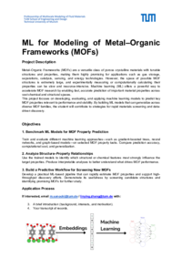 This project focuses on developing, evaluating, and applying machine learning models to predict key MOF properties relevant to performance and stability. By building ML models that can generalize across diverse MOF families, the student will contribute to strategies for rapid materials screening and data- driven discovery.