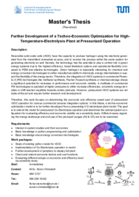 Therefore, this work focuses on determining the economic and efficiency sweet spot of pressurized rSOC operation for various commercial process integration options. In this thesis, a techno-economic optimization model is to be further developed from a preexisting 0-D electrolysis plant model. The goal is to extend the model for pressurized Co-Electrolysis operation and determine the optimal system configuration for evaluating efficiency and economic viability via a sensitivity study. Different cases regarding the energy landscape and end-use of the produced syngas (H2 & CO) are to be examined.