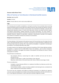 The increasing scale of satellite constellations is driving the transition from centralized mission planning toward distributed satellite systems (DSS) with onboard autonomy. Decentralized task allocation improves robustness and scalability but introduces communication and computational challenges, especially when tasks generate large data volumes. In realistic Earth observation missions, task data size directly impacts inter-satellite communication, onboard processing, and system performance. This thesis extends an existing decentralized task allocation framework to systematically study the effect of task data size on task allocation efficiency, fulfilment of observation, robustness, communication overhead, and complexity across different constellation architectures and levels of centralization.