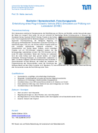 Erzeugung und flexibilisierten Verbrauchern sowie die Erprobung von Speicherlösungen, P2X uvm. Als Teil des SHS|31 Projekts wollen wir eine modulare, bidirektionale Ladesäule entwickeln. Für Inbetriebnahme und Testing dieses Aufbaus, sowie zukünftiger Projekte, soll ein PEV-Simulator aufgebaut werden, der das fahrzeugseitige Ladeinterface emuliert. Der PEV-Simulator soll ACsowie DC-Laden unterstützen. Neben dem Testing von Ladesäulen kann der selbe Aufbau auch dazu genutzt werden, um eingens entwickelte Fahrzeug-Prototypen an existierenden Ladesäulen zu laden. Zu deinen Aufgaben zählt die Erarbeitung eines Konzeptes in Zusammenarbeit mit dem Betreuer, der Aufbau der Hardware, die Programmierung des Microcontrollers sowie die Einrichtung des Software-Stacks auf dem Main Controller (z.B. Raspberry Pi) und schlussendlich die mechanische Zusammenführung aller Komponenten sowie die Durchführung erster Tests.- Voraussetzungen