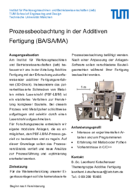 Für die Weiterentwicklung unserer Eigenbauanlagen soll die kamerabasierte Prozessbeobachtung befähigt werden. Nach einer Anpassung der Anlagen-Software sollen verschiedene Bauteilgeometrien während ihrer Fertigung beobachtet werden.