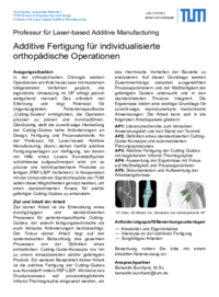 In der orthopädischen Chirurgie werden Operationen am Knie heute zwar mit modernen bildgebenden Verfahren geplant, die eigentliche Umsetzung im OP erfolgt jedoch weitgehend manuell. Das erfordert viel Erfahrung und birgt Potenzial für Ungenauigkeiten. Patientenspezifische „Cutting-Guides“ ermöglichen, die Operation präziser zu planen und durchzuführen. Gleichzeitig stellt die zuverlässige Herstellung der Cutting-Guides hohe Anforderungen an Design, Fertigung und Prozesskontrolle. An der Professur für Laser-based Additive Manufacturing (lbam) stehen hierfür additive Fertigungsanlagen zur Verfügung, bei denen mit Hilfe eines Lasers Kunststoffpulver schichtweise aufgeschmolzen wird, um so präzise und individualisierbare Produkte zu fertigen (PBF-LB/P Verfahren). In Kooperation mit der Universitären Sportorthopädie der TUM sollen diese Möglichkeiten genutzt werden, um einen standardisierten Ansatz für additiv gefertigte Cutting-Guides zu entwickeln.