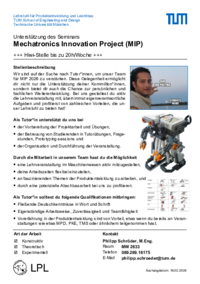 HiWi Stelle Unterstützung des Seminars Mechatronics Innovation Project
