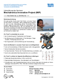 Unterstützung des Seminars Mechatronics Innovation Project (MIP)