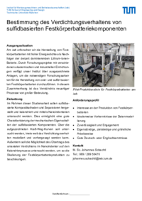 As part of this research project, sulfide-based composite cathodes and separators will be fabricated, calendered, and examined using nanoindentation. This will allow for a thorough characterization of the mechanical properties of the sulfide-based components. The recorded force-displacement curves will be used to investigate the extent to which the compaction behavior can be modeled and predicted. In addition, the possibility of transferring the uniaxial compaction in the nanoindenter to the calendering process will be investigated in order to accelerate the scaling of solid-state battery production.
