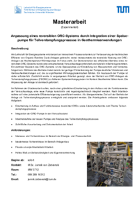Am Lehrstuhl für Energiesysteme wird derzeit an innovativen Prozessvarianten zur Verbesserung der technischen Effizienz von Organic Rankine Cycle-Anlagen geforscht, wobei insbesondere die reversible Nutzung von ORC-Anlagen als Hochtemperatur-Wärmepumpe im Fokus steht. Zur Demonstration des effizienten Betriebs eines reversiblen ORC-Systems wurde eine entsprechende Versuchsanlage entwickelt und kürzlich in Betrieb genommen. Ein zentraler Baustein des ORC-Systems ist die Speisepumpe zur Einstellung von Massenstrom und Verdampfungsdruck. Während des Betriebs traten bereits bei geringer Förderleistung der Pumpe deutliche Vibrationen und Geräuschentwicklungen auf, die zu signifikanten Wirkungsgradeinbußen führten. Ein Austausch der Pumpe ist daher erforderlich. Zusätzlich wurde in vergangenen Arbeiten gezeigt, dass der Betrieb von ORC-Anlagen als Teilverdampfungsprozess (PEORC) zu höheren Systemwirkungsgraden im Kontext Geothermie führen kann. Die Anpassung der Anlage ist demnach gefordert.