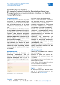 Ziel der Arbeit ist die Konzeption und prototypische Implementierung einer ML-basierten Pipeline zur automatisierten Analyse historischer Betriebsdaten von FTS und zur Ableitung konkreter Optimierungsempfehlungen.