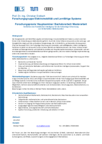 Rahmenbedingungen: Die Betreuung an der TUM übernimmt Prof. Endisch vom Lehrstuhl für Hochleistungs-Umrichtersysteme (HLU) und erfolgt in Zusammenarbeit mit der Forschungsgruppe Elektromobilität und