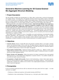 This project focuses on the output representation problem: what is the most effective way to represent a self-assembled aggregate structure (e.g. composed of hundreds of peptides) in 3D so that ML models can learn to generate such configurations from sequences? To solve this, the student will survey existing generative ML approaches applied to 3D structure generation in soft-matter systems and molecular modeling - especially focusing on how these models encode and generate the 3D output structure. Then, using available datasets (e.g., synthetic data, polymer or lipid assemblies, and approx. 100 peptide aggregate trajectories), they will implement and benchmark multiple 3D representation strategies such as voxel grids, point clouds and implicit neural fields (e.g. occupancy or SDF).