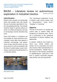 BA/SA - Literaturstudie zur Autonomen Exploration in der Industriellen Robotik