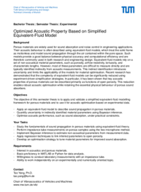 The objective of this thesis is to apply and validate a simplified equivalent-fluid modeling framework for porous materials and to use it for acoustic optimization based on experimental data.