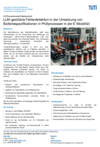Im Rahmen des TwinBat-Projekts soll gemeinsam mit dem Projektpartner TÜV Süd Battery Testing GmbH eine LLM-basierte Methode entwickelt werden, die Fehler im Umsetzen der Spezifikation vor Teststart in einem Testplan bzw. nach erfolgtem Test in den Messdaten automatisiert erkennt.