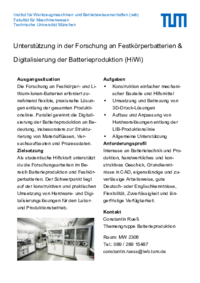 Unterstützung in der Forschung an Festkörperbatterien & Digitalisierung der Batterieproduktion (HiWi)