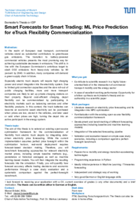The aim of this thesis is to extend an existing open-source optimization framework for the commercialization of flexibility from electric truck depots by integrating data-driven electricity price forecasting. While the current implementation assumes perfect price foresight within the optimization horizon, real-world deployment requires forecast-based decision making. Therefore, you will benchmark forecasting approaches for relevant electricity market prices, including simple baseline methods (e.g., persistence or historical averages) as well as machine learning-based models. You will then integrate the resulting forecasts into the simulation. Finally, you will quantify how forecast accuracy affects trading decisions and economic performance through a case study evaluation and a systematic comparison against the perfect-foresight benchmark.