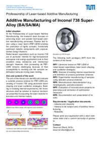 The aim of the thesis is to identify and evaluate a suitable process window for PBF-LB/M processing of Inconel 738 using advanced beam shaping and laser oscillation strategies. Building on existing internal experiments, the microstructure shall be tailored to improve mechanical properties by adjusting the laser-material interaction and thermal history.