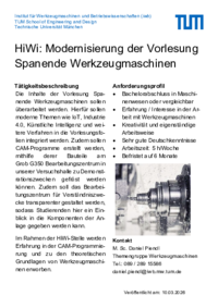 HiWi: Modernisierung der Vorlesung Spanende Werkzeugmaschinen